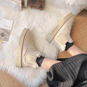 潮牌2021秋冬新款雪地靴女加绒厚底棉鞋英伦风百搭...