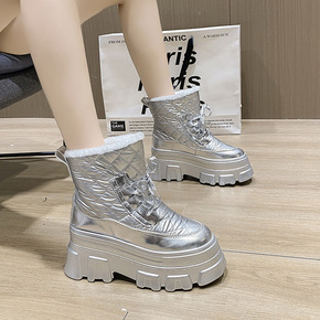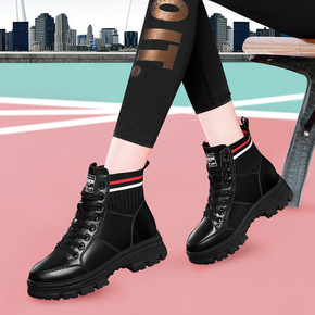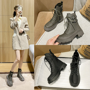 2022年冬季加绒女靴新款马丁靴欧美风厚底帅气瘦瘦...