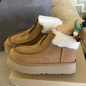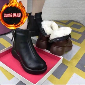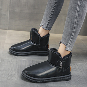 雪地靴女河南桑坡村炸街小短靴女皮面厚底保暖软底短靴...
