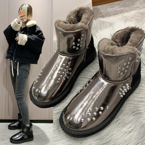 雪地靴女2020新款秋冬韩版厚底短靴学生百搭加绒加...