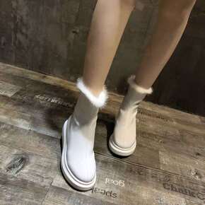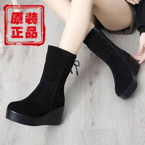 全皮雪地靴女款加厚加绒中长款中筒靴兔毛厚底冬大码时...