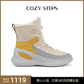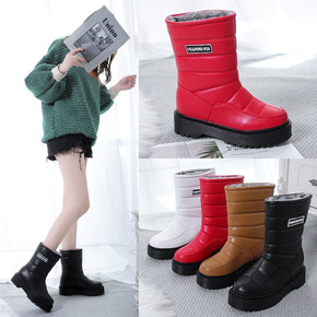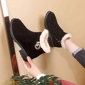 真皮雪地靴女2021秋冬季中筒靴厚底加绒短靴棉皮鞋...