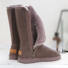 冬季新款中筒靴加绒雪地靴真皮厚底保暖女靴滑女单靴磨...