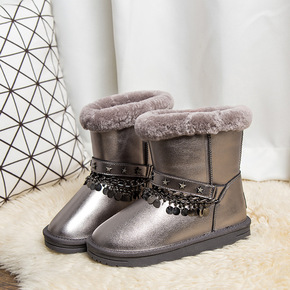 真皮儿童雪地靴宝宝女童短靴子男童棉鞋小童加绒保暖羊...