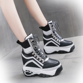 欧货时尚潮鞋内增高短靴厚底高帮运动棉鞋超高跟12C...