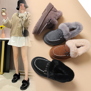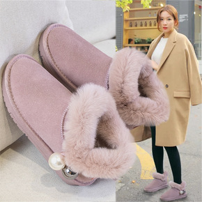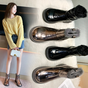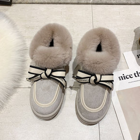 雪地靴女2021冬季新款兔毛加绒加厚短靴韩版懒人一...