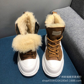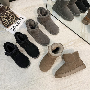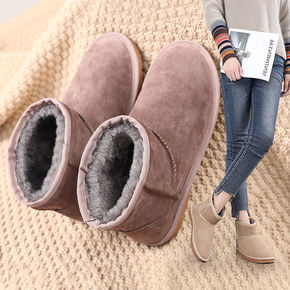 跨境雪地靴女2021新款羊毛保暖加绒棉鞋休闲中筒女...