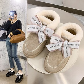 甜美蝴蝶结雪地靴女2020秋冬季新款韩版加绒加厚保...