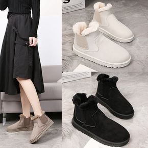 2019秋冬季新款棉鞋女百搭平底防滑短靴子保暖加绒...