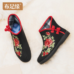 新款老北京布鞋冬棉麻加绒保暖鞋民族风古装僧侣女鞋平...
