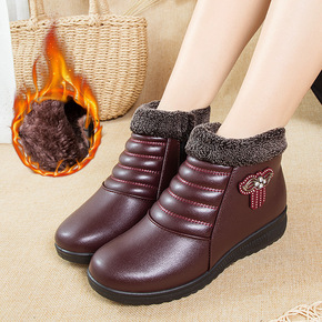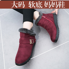 冬季妈妈鞋老人棉鞋软底中老年女短靴加绒保暖靴子平底...