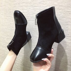 秋冬季网红新款时尚短靴女中跟前拉链英伦风马丁靴瘦瘦...
