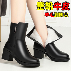 2021冬季厚毛烟筒靴防水防滑皮毛一体女雪地靴真皮...