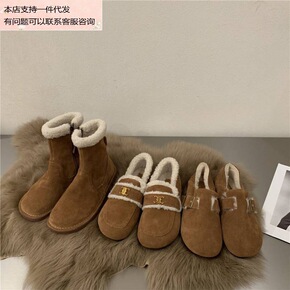 毛毛鞋女冬外穿加绒乐福鞋平底鞋博肯鞋短靴雪地靴女2...