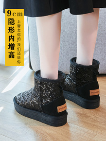 雪地靴女厚底2021年新款冬季内增高短靴加绒加厚保...