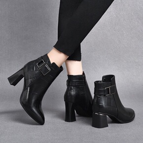 亚马逊独立站外贸2021冬季新款大码粗跟高跟卷筒短...