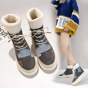 2021年秋冬季新款大码毛线口侧拉链方跟短筒靴女欧...