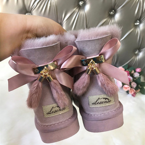 2021冬新款羊皮毛一体雪地靴女羊毛网红水貂毛蝴蝶...