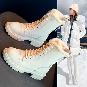 好看女士软皮面马丁靴加绒加厚网红靴子女超火棉鞋防滑...