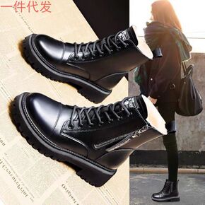 速卖通wish短筒马丁靴女2020冬季新品车线粗跟...