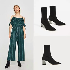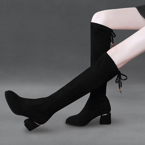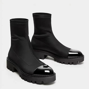 ZE新款时装女鞋粗跟短靴套筒厚底靴粗跟圆头弹力平底...