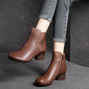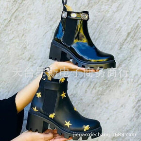 秋冬马丁靴21年冬季加绒中跟靴子欧美绣花外贸短靴套...
