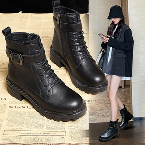 2021马丁靴女真皮秋冬新款单靴英伦风短靴中筒侧拉...