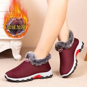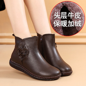 2020大码中年妈妈棉皮鞋羊毛女棉鞋中跟短靴粗跟加...