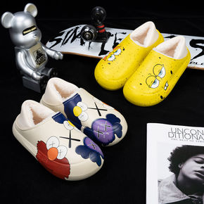 搞怪棉拖鞋情侣棉拖外穿防水防滑厚底包跟鞋家用保暖加...