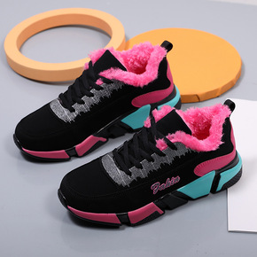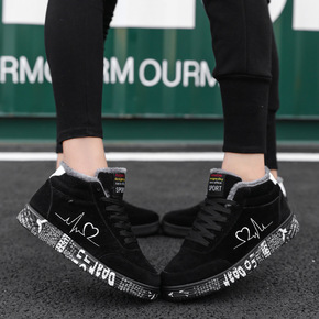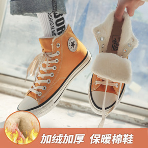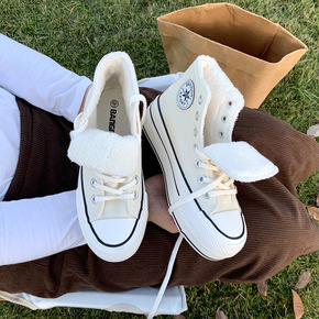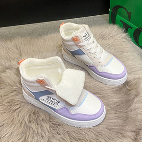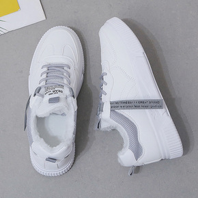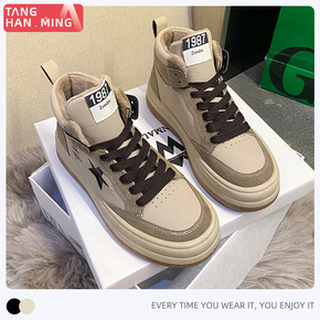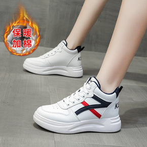 高帮运动小白板鞋女2020年新款秋冬棉鞋加绒韩版时...