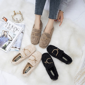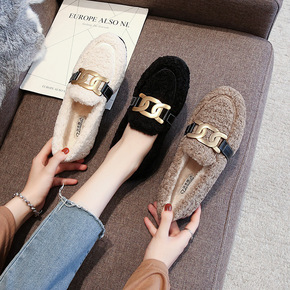 2020新款羊羔毛女鞋加绒外穿时尚百搭豆豆鞋女冬孕...