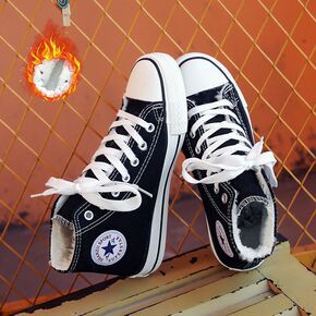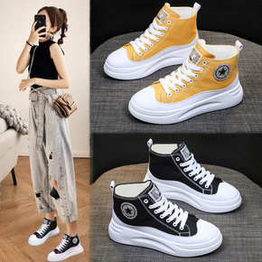 棋盘格帆布鞋女2021秋冬新款系带厚底韩版低帮加绒...