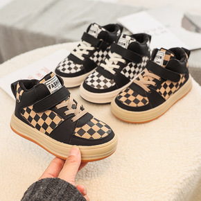 ins儿童鞋时尚棋盘格男童休闲棉鞋2022年春季新...