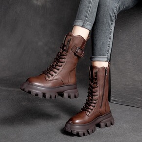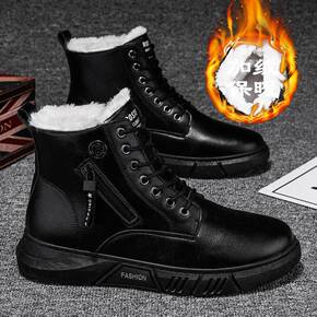 中筒雪地靴女厚底2021冬季新款软底松糕英伦风帅气...
