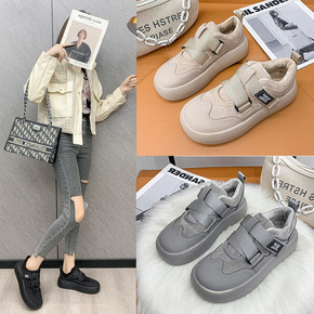 溶解鞋女2021秋冬新款加绒保暖棉鞋韩版厚底板鞋潮...