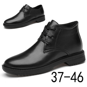 冬季新款真皮老爹鞋子男板鞋棉鞋潮流低帮靴子男士厚底...