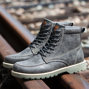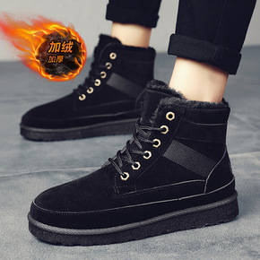 跨境2021秋冬新款男士马丁靴加绒保暖高帮棉靴大码...