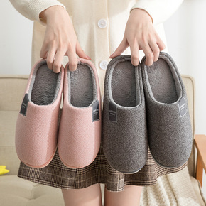 拖鞋女秋冬家居简约卧室保暖毛绒室内冬成人棉托鞋男家...