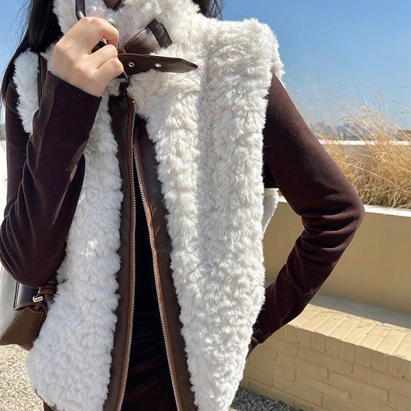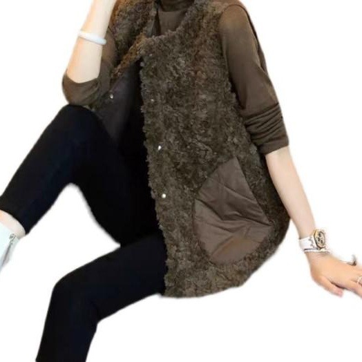苏安家 羊羔毛马甲女外穿冬季百搭宽松时尚无袖坎肩加...