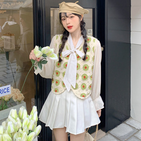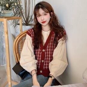 秋季2022新款韩版小个子宽松慵懒外出针织马甲背心...