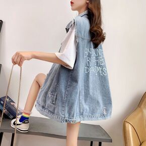 慵懒风牛仔马甲女春夏2020新款韩版宽松bf风字母...