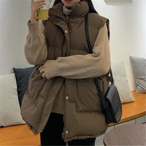2021秋冬季新款韩版宽松坎肩中长款棉马甲女羽绒棉...