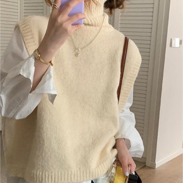 黑 哥 复活款韩版宽松高领叠穿毛衣马甲女显瘦针织背...