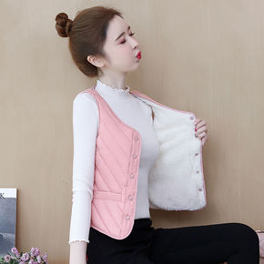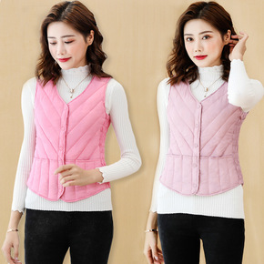 新款秋冬女羽绒棉马甲短款修身轻薄棉背心V领保暖加厚...
