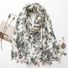 印花旅游民族风流苏人棉围巾 春秋装饰穆斯林头巾女方...