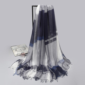 日系格子真丝围巾柔软莫代尔加长加大空调薄款护颈丝巾...