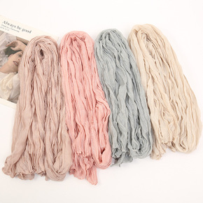 新款莫代尔汗布懒人纱巾方便头巾女士单色围巾...
