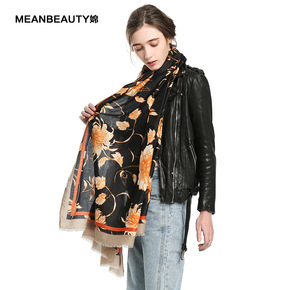 工厂直销烫金印花围巾秋冬薄款大花围巾披肩跨境货源直...