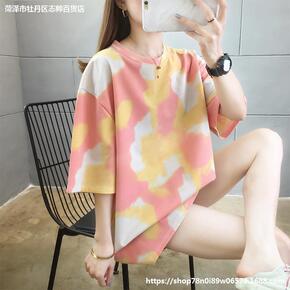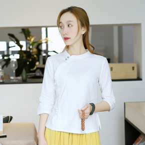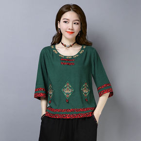 新韩版亚麻女装七分袖t恤 棉麻五分袖大码宽松衬衫纯...