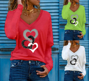 新品现货2022春秋跨境百搭宽松型V领印花棉混纺长...